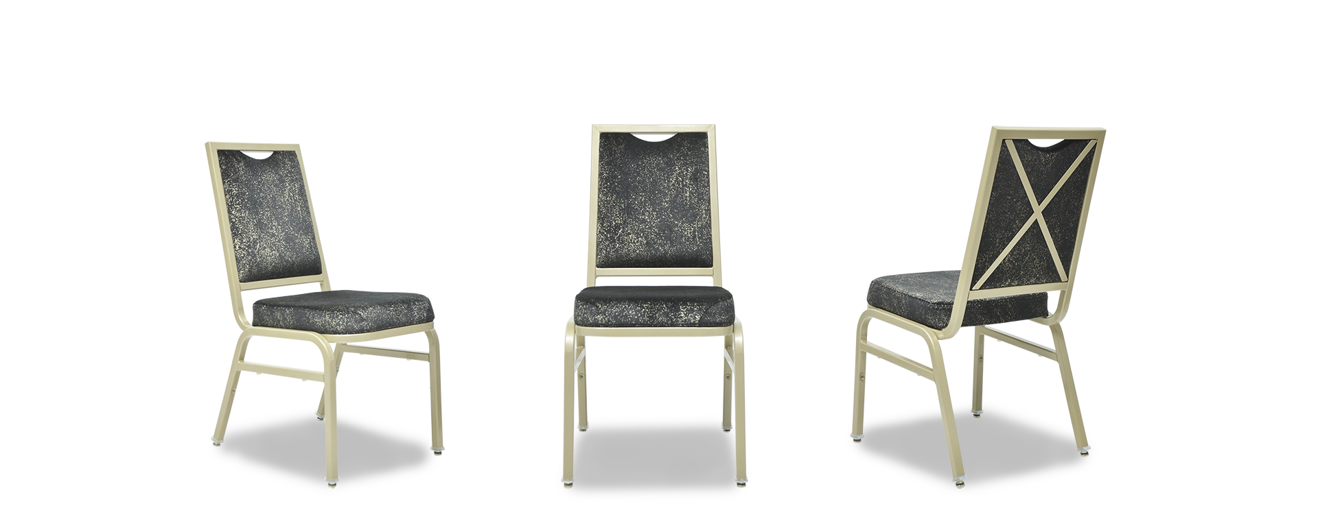 The chair’s upholstery is crafted in a textured, speckled fabric that adds a refined visual character and resists wear, making it suitable for heavy-duty commercial use.