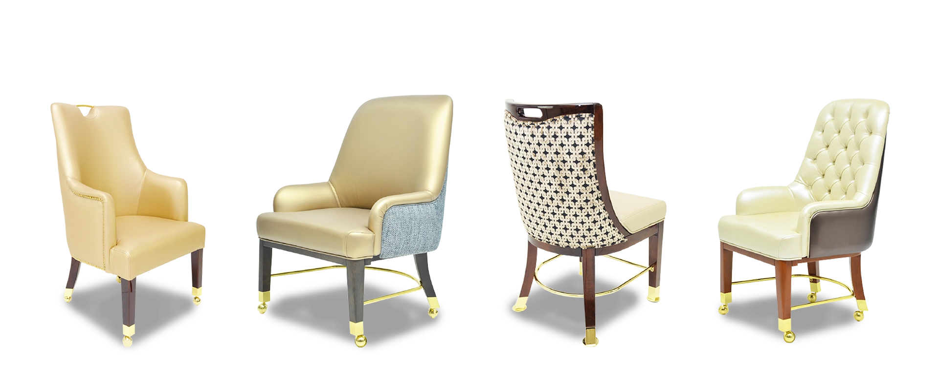 A solid wooden frame ensures stability and long-term durability for demanding contract environments. Integrated castors allow for smooth movement and easy repositioning, while refined metal details at the feet and footrest add a subtle touch of sophistication. With its timeless design and premium materials, Model 870 adapts seamlessly to a wide range of elegant interior concepts.